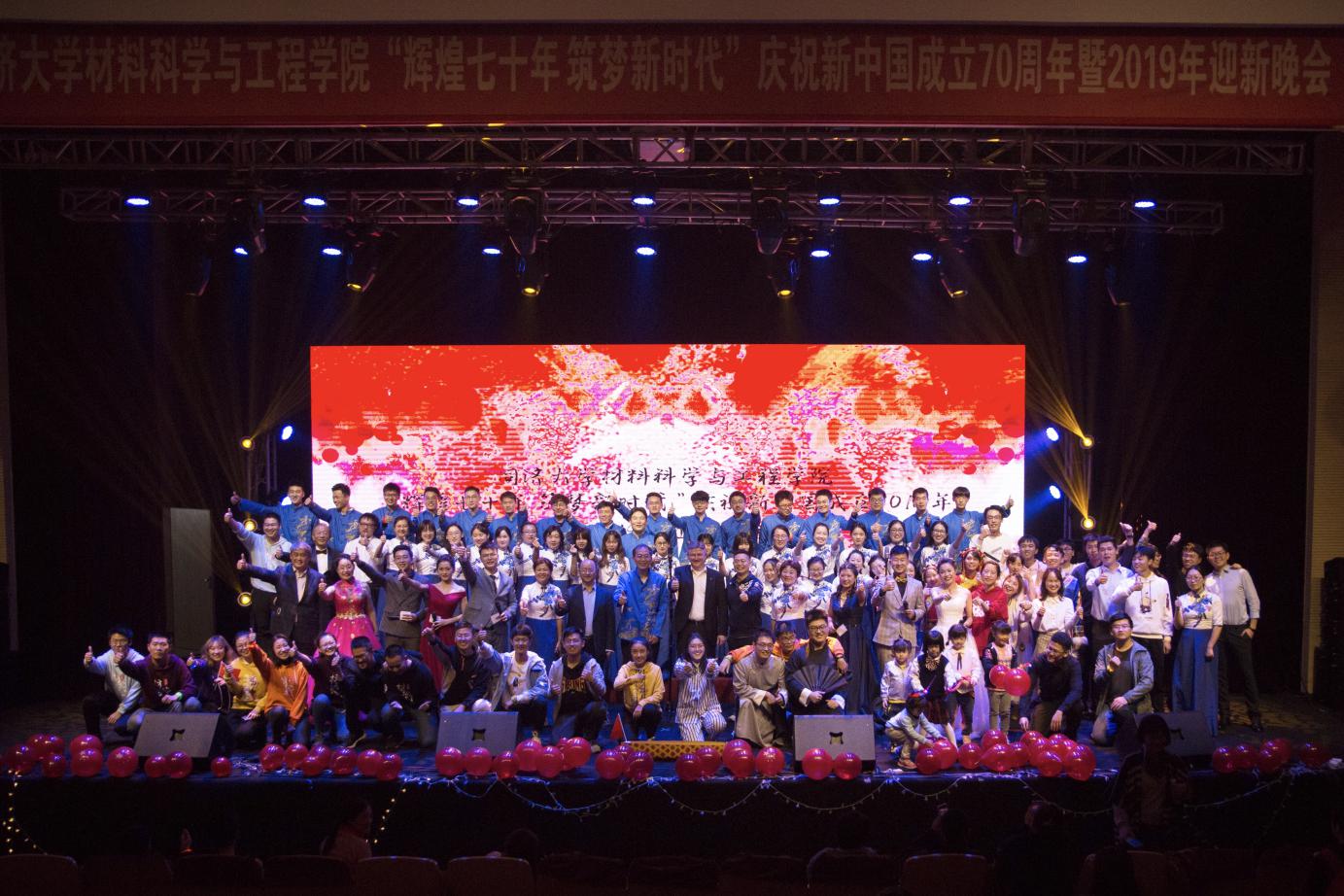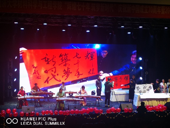 材料学院师生的共同努力下,本次“辉煌七十年,筑梦新时代”庆祝新中国成立70周年暨2019级迎双新晚会历时3个多小时,顺利落下帷幕!最后,在这里要向为本场晚会辛勤付出的所有师生、工作人员致以最真诚的感谢和祝福!
