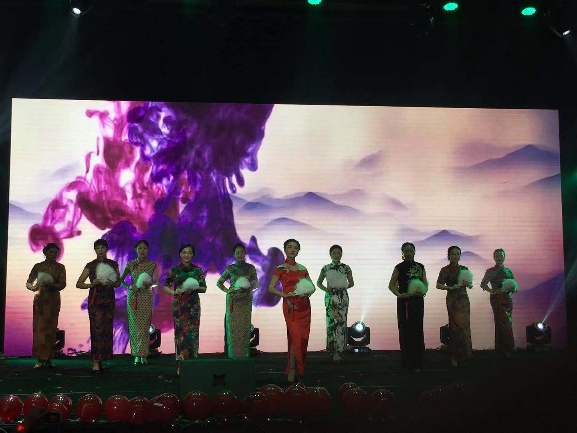 旗袍社嘉定分社的老师们为大家带来的精美《旗袍韵》赢得满场喝彩,将晚会气氛推向高潮。另一个节目《韵味嘉“材”》则是由小黄书
