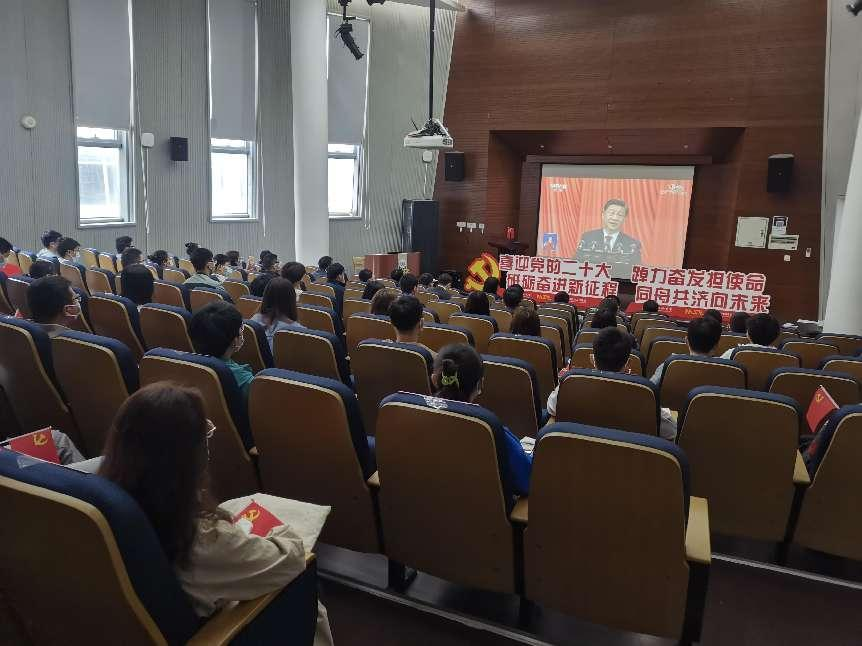 党委组织学院全体师生收看中国共产党第二十次全国代表大会,学院领导班子成员、党支部书记、师生代表75人在嘉定校区德才馆报告厅及441会议室集中收看,其余党员同志300余人因疫情防控要求,在线上进行同步收看。