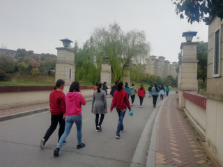 此次健步走活动从德才馆出发,经过通达馆,绕过体育馆的健康步道,途径济海、济事楼、同心楼、高尔夫球场。大家穿着轻便的运动服饰,迈开步子、昂首向前,沐浴着阳光,在春风的陪伴下边走边欣赏沿途风光,展示着学院教师们良好的身体素质。