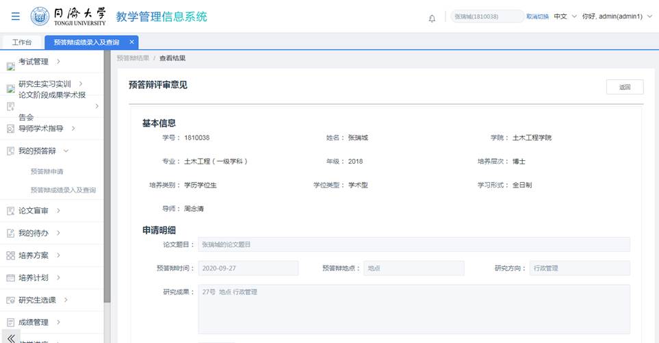 l 学生需要配置权限后才可看到“预答辩”菜单,如未看到菜单,请联系管理员为其授权后再重新登录查看。