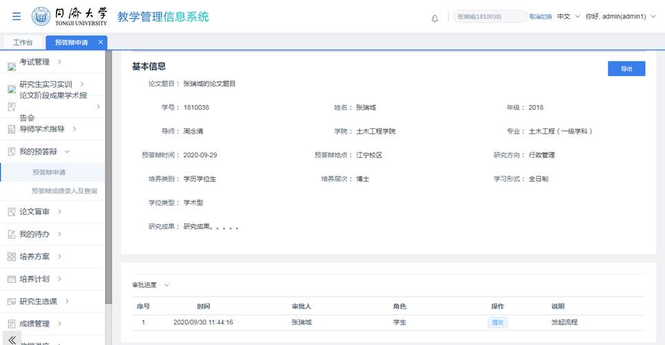 教学管理信息系统-必修环节-预答辩功能业务,为学生提供简单的操作指导。