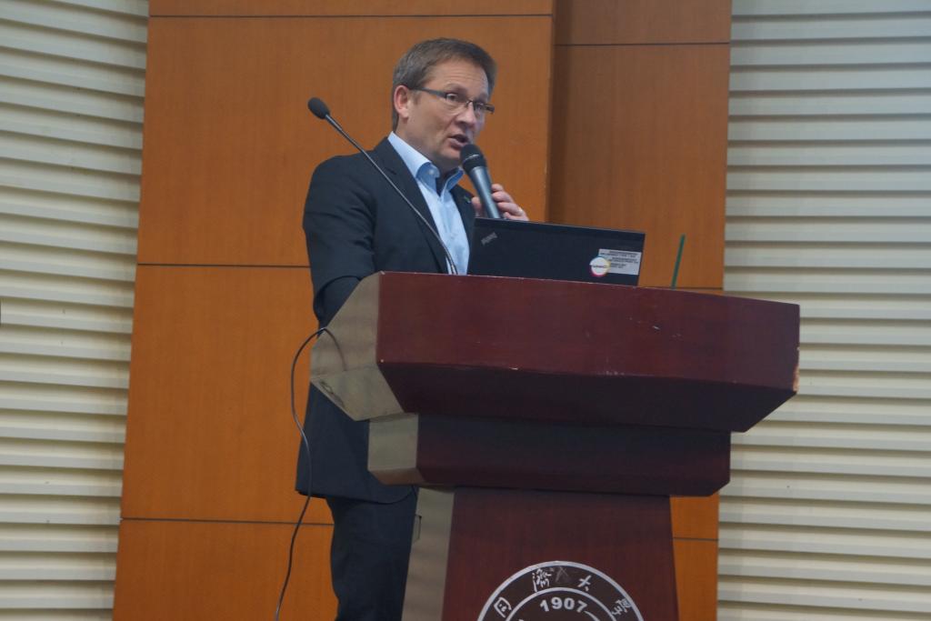 特邀讲座教授、同济-科思创创新研究院院长、科思创亚太区创新负责人、科思创聚合物研发中心负责人韩思乐博士(Dr. Christian Haessler)、科思创健康安全环境&行政经理许文波女士以及同济-科思创创新研究院科思创代表、科思创行业倡导与可持续发展经理郭辉先生出席。大会共分三个议程:韩思乐博士与许文波女士做主题为《实验室安全与管理》的报告;袁华副书记兼纪委书记通报高校违纪案例,进行警示教育;袁华副书记向全体教职工介绍工会福利。本次大会由院党委书记王中平书记主持。