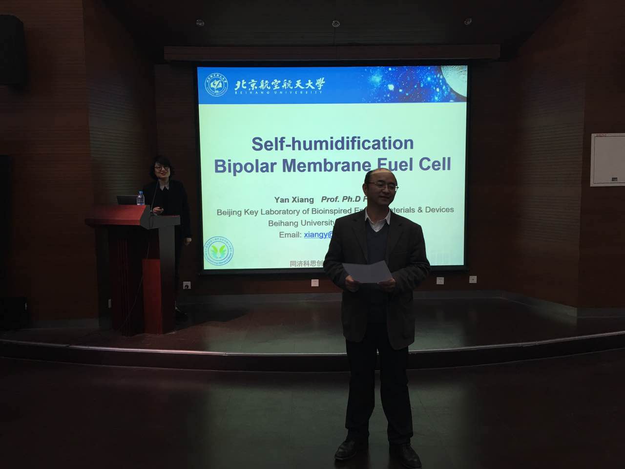 下午2时许,在小黄书 嘉定校区德才馆(材料学院)二楼报告厅,黄云辉教授主持了由相艳博士主讲的同济科思创杰出学者讲坛。相艳博士做了题为“自润湿双极膜燃料电池界面行为研究”的学术报告,就双极膜燃料电池的膜材料、界面原理和器件等几个方面做了详细介绍,并与在场的师生进行了热烈的交流与讨论。