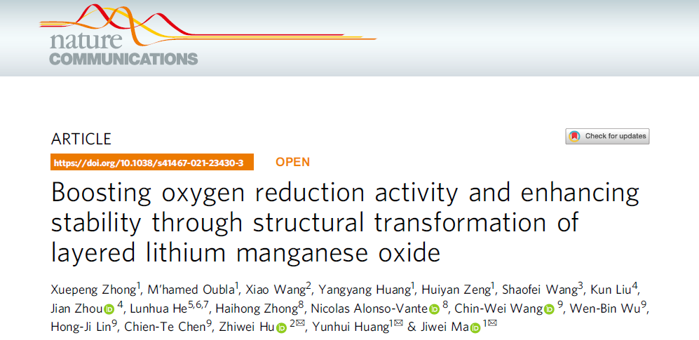 马吉伟教授、黄云辉教授和德国马克斯·普朗克固体化学物理学研究所Zhiwei Hu教授为该论文的共同通讯作者,课题组博士生钟雪鹏为第一作者。