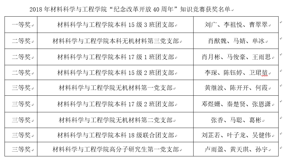 本科15级3班团支部夺得此次大赛的桂冠。知识竞赛的一二三等奖获奖名单如下表,其余队伍获风采奖。