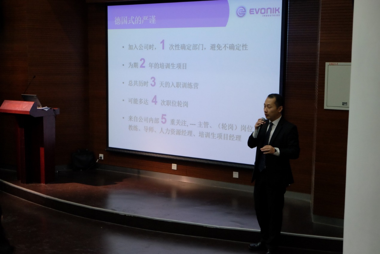 的追求“严谨、求实、团结、创新“的校训以及“同舟共济”的合作精神不谋而合,陈金秋博士也是我校留德预备部1987届留德学生。程大年介绍了赢创2017年岗位需求和赢创管培生项目,陆芳作为同济校友分享了她在赢创成长的十年经历,深刻体会到赢创以人为本的人才培养模式。