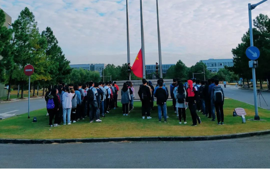 升旗仪式在嘉定校区庄严举行。学院近两百名学生参加升旗仪式,高玉磊、王凌凌、周龙、李楠、马嘉宇老师等,也出席了升旗仪式。