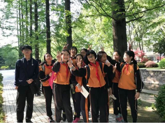 亮橘色的校服,火红的红领巾,在春风中飞扬的是小朋友们的快乐笑声,在阳光下闪耀的是小朋友们的灿烂笑容。拿着志愿者们准备的同济游纪念品,小朋友们和志愿者在毛主席像下留下了第一张集体照。在草木葱茏,春光明媚的校园里,小朋友在志愿者的带领下在一个又一个地方留下了自己的足迹,他们走过树叶环绕的林间小道,金色斑驳的阳光洒在大家的肩头;他们走过水面上的小桥,有柔嫩的柳枝点缀着晶莹的湖面;他们走过庄严的大礼堂,他们也走过三好坞,生机勃勃的美景孕育着动听鸟语。这里面,有曾经来到过的小朋友,也有许多孩子第一次跨进大学的校门,美丽的校园,浓郁的氛围,在孩子们心中埋下一颗叫梦想的种子。