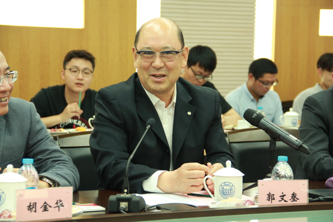 座谈交流会由79级校友胡金华主持,胡老师精心准备,以字字珠玑,句句寓意的唐诗宋词,由衷表达了对郭学长的敬佩之情,他戏称自己是六早老校友(入党早、当学生干部早、毕业留校提干早、出国留学早、归国创业早、退出江湖早),加之年近花甲、性情散淡,早已过了轻易崇拜某个人的阶段,更不可能去刻意结交某位名人,为什么欣然接受学院的委托、当这个座谈会的主持人呢?是郭学长的奋斗历程、光辉业绩、卓越品格绝对令人高山仰止,无比崇敬。郭学长经过四十年的不懈努力,带领企业全体员工把海螺集团从皖南偏僻山区的一个普通水泥厂发展成中国乃至世界最大的水泥专业生产集团,企业净资产增加了4000倍,企业市值增加了近300倍,2018年全年水泥生产总量是全美国水泥生产总量的三倍,堪称伟大,他是全国最优秀的企业家之一,全体同济校友中最杰出的企业家,没有之二,是我们全体同济人的骄傲,更是我们所有材料学院师生、校友的骄傲,这是他的光辉业绩!在企业发展的同时,郭学长忠实地践行了社会主义的核心价值观,没有半点穷庙富方丈的歪风邪气,没存半点把企业发展成果归于个人的私心杂念,而是带领1万5000多名企业员工集体持股、共同富裕,开创了国家、企业、个人共同发展的崭新模式,这是他的卓越品格。胡老师引用民国时期国学大师王国维以三段宋词阐述的人生三境界诠释了郭学长的传奇人生:“昨夜西风凋碧树。独上高楼,望尽天涯路;衣带渐宽终不悔,为伊消得人憔悴;众里寻他千百度。蓦然回首,那人却在,灯火阑珊处”;如果蓦然回首间还有什么行星值得我们抬头仰望,那么今夜同济校园上空最闪耀的星就是我们郭学长!胡老师衷心祝愿同学们像郭学长一样志存高远、毕生奋斗、星耀长空!