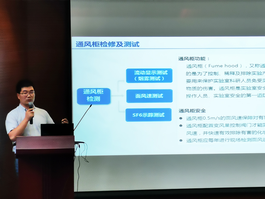 &上海埃松气流控制技术有限公司联合开展了关于实验室通风和用气安全的专题培训,培训通过安全讲座、师生趣味问答、现场实验室检测等形式,吸引了学院在读硕士及博士研究生等100余人参与。