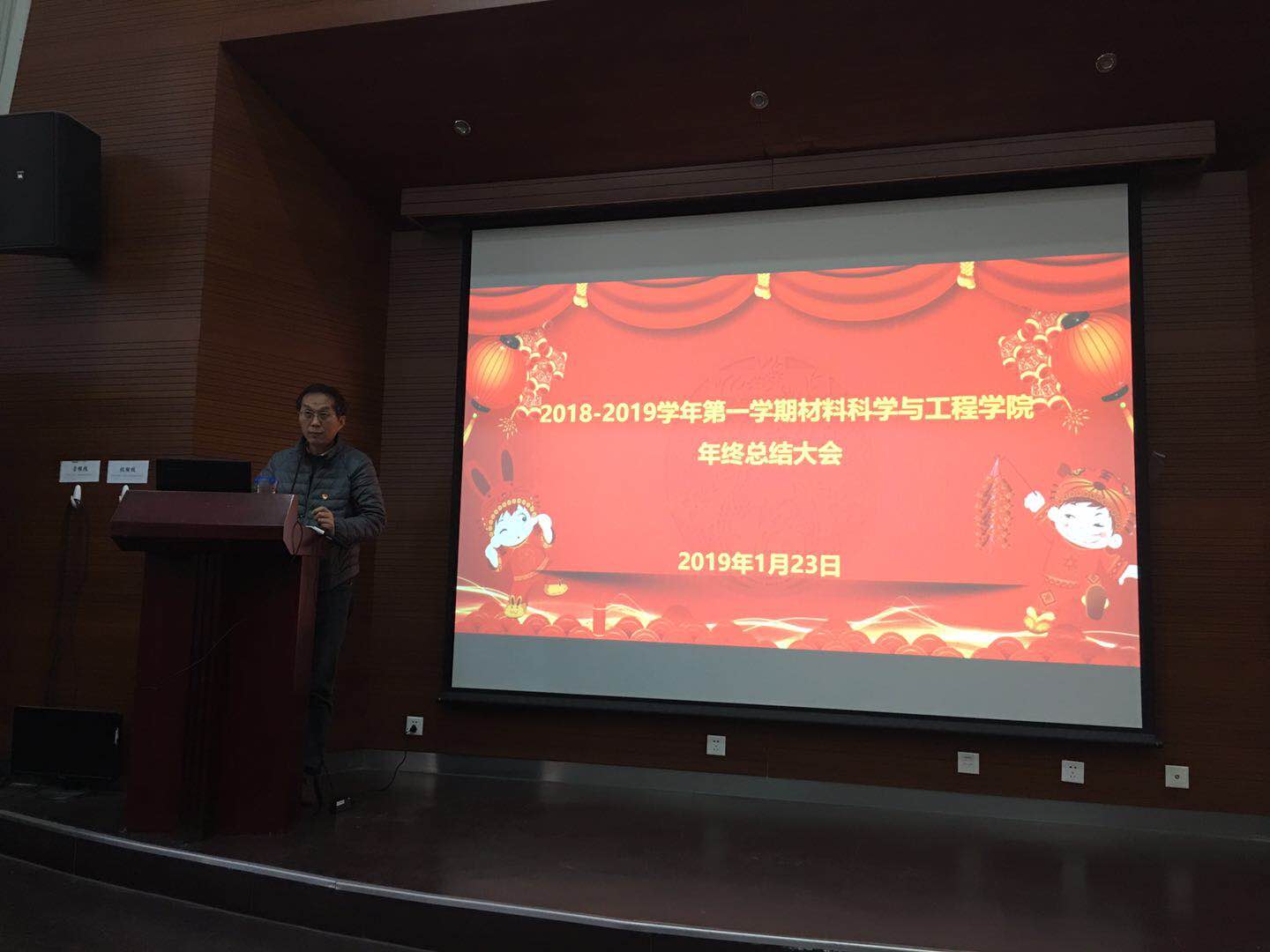 最后,王中平书记代表学院领导班子向与会教职工通报了学院领导班子召开2018年度专题民主生活会情况,对2019年师德师风、意识形态工作、安全稳定工作等做了工作部署和工作要求。王书记强调:所有老师要充分认识教职工政治理论学习的重要意义,杜绝轻学习、重业务的现象,按时保质地开展理论学习,同时进一步完善考核制度,推进教职工政治理论学习常态化。王书记说,学院领导班子将紧紧依靠全院教职员工,发挥班子成员的集体智慧和力量,推动学院体制机制的完善和民主管理的进程,改进学院班子的工作作风,促进材料学院学科的发展,力争早日实现学院发展战略目标。