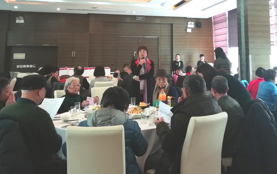 的退休教师们举行了一年一度的春节聚餐活动。老师们欢聚一堂,喜迎春节。