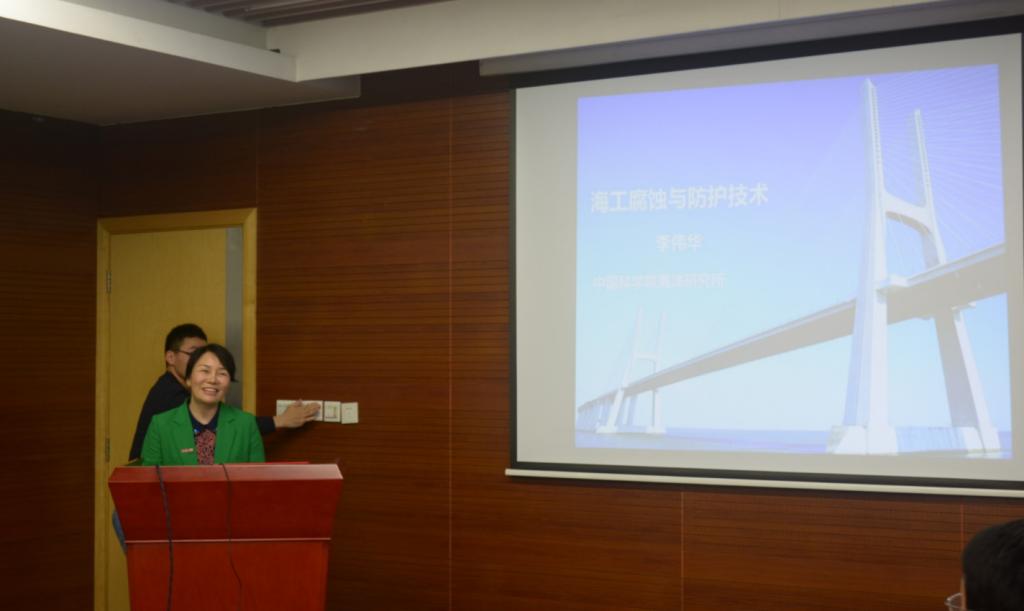 的诚挚邀请表示感谢,介绍了自己目前的研究方向进展和未来展望,表示将竭尽所能在同济材料人才培养、项目合作等方面做出更大的贡献。她还为学院师生作了题为“海工腐蚀与防护技术”的精彩学术报告,并与参会师生进行了深入交流。