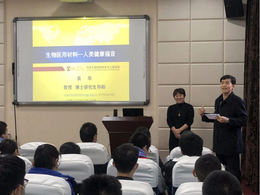 党委副书记兼纪委书记袁华教授来到中央民族大学附属中学校朝阳校区,为高一年级同学们开展了题为“生物医用材料——人类健康福音”的科普讲座,中央民大附中副校长王国德出席了本次讲座。