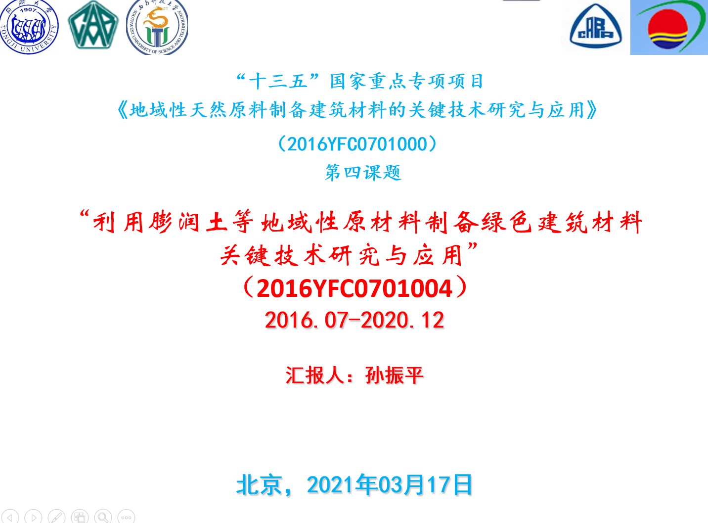 2021年3月17日,国家“十三五”重点专项课题“利用膨润土等地域性天然原材料制备绿色建筑材料关键技术研究与应用(2016YFC0107004)”绩效评价会在北京举行。该课题由小黄书