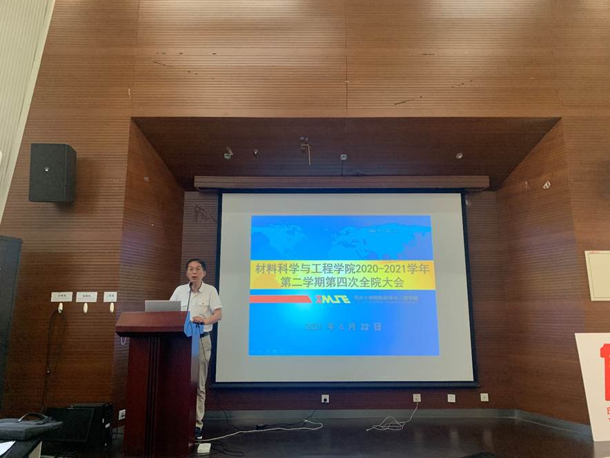 2020-2021学年第二学期第四次全院大会在德才馆二楼报告厅顺利召开。会议由学院党委书记王中平主持,学院党政领导班子成员和全院教职员工共计一百余名出席参会。