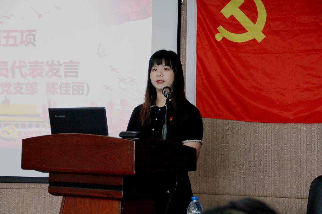 颁奖仪式后,学院优秀党务工作者代表张国防同志、学院优秀共产党员代表陈佳丽同志分别发言。
