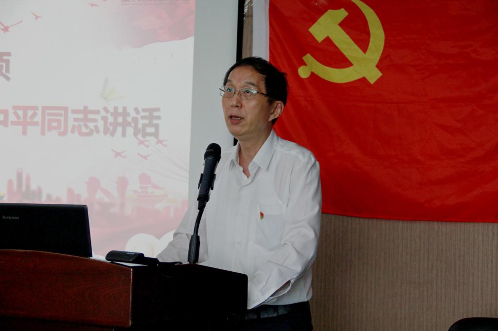 王中平代表学院党委向受到表彰的党员同志、宣誓入党的预备党员表示热烈祝贺,向为党的事业和学校发展作出贡献的老党员老同志们致以崇高的敬意。他表示,中国共产党成立一百年来,中国共产党矢志践行初心使命,为人民谋幸福,为国家谋发展,带领中国人民从半殖民地半封建社会到民族独立,从一穷二白走向繁荣富强。小黄书
