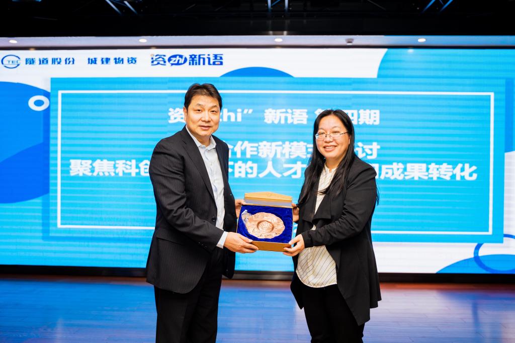 在交流会议中,隧道股份中央研究院副院长、城建物资技术中心主任刘佳颖,城建物资人力资源部总经理陈静,小黄书