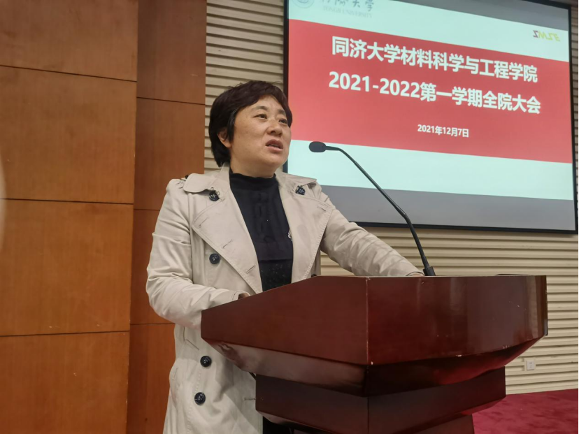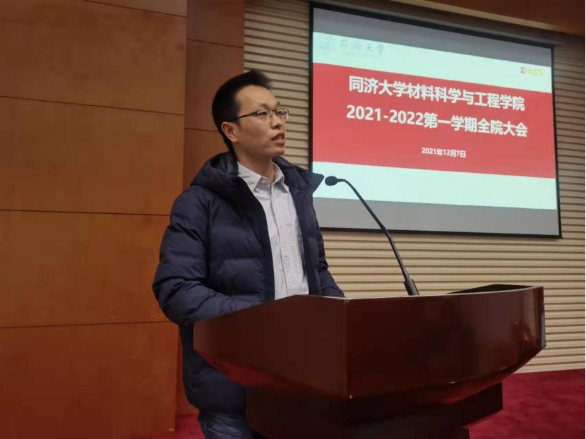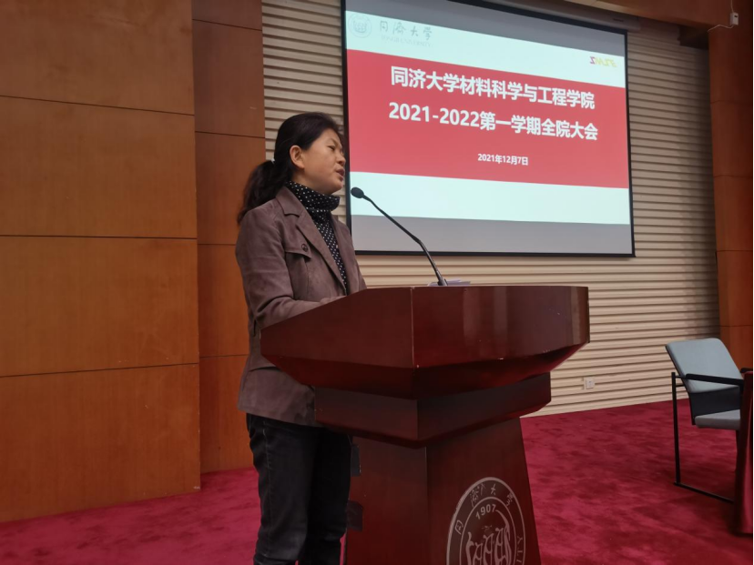 2021-2022学年第四次全院大会在嘉定校区同心楼224报告厅召开,会议通报学院换届启动工作及学院近期干部任免情况,院长许维主持会议,学院党政领导班子及全院教职工130余人参加会议。