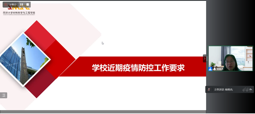 随后,杨晓杰书记通报近期四平路校区疫情情况,传达学校近期疫情防控工作要求。强调疫情防控不松懈,要求广大教职工严格执行学校防疫要求,坚持每日健康填报、每日核酸检测,非必要不离沪、尽量不聚集等,共同守护校园安全。