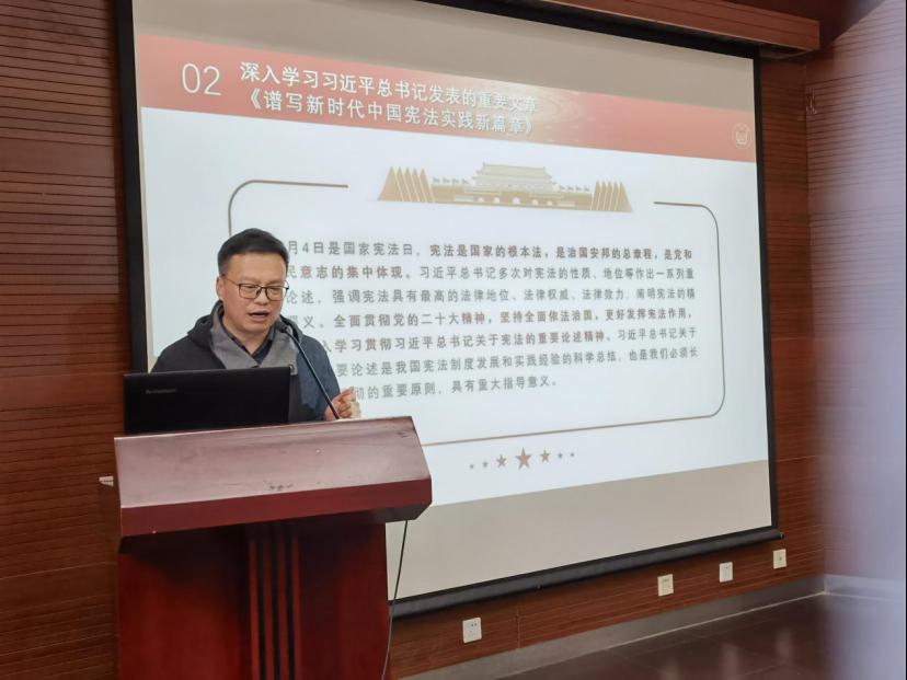 随后,邱军副书记组织全院教职工开展2023年2月政治理论集中学习,领学了习近平总书记发表的重要文章《谱写新时代中国宪法实践新篇章》。邱军副书记强调:宪法是国家的根本法,是治国安邦的总章程,是党和人民意志的集中体现,学院要全面贯彻党的二十大精神,坚持全面依法治国,更好发挥宪法作用,要深入学习贯彻习近平总书记关于宪法的重要论述精神,全面贯彻实施宪法,推进依法治校示范学院建设,为实现学院转型发展提供基础保障。