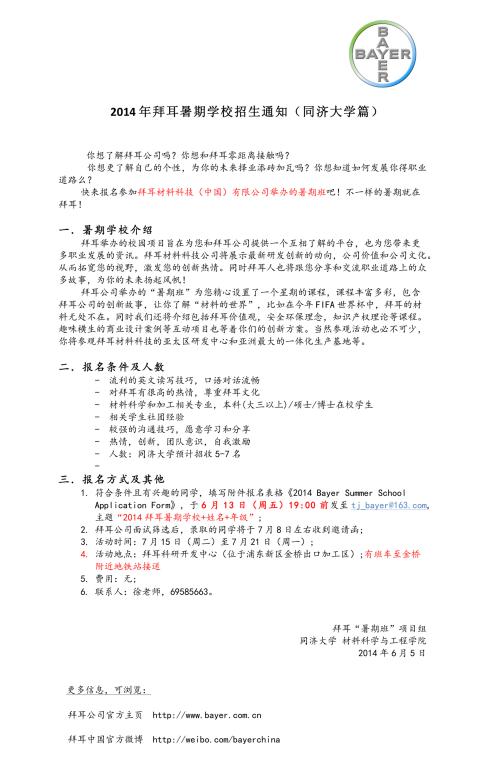 附件:2014年暑期学校报名表