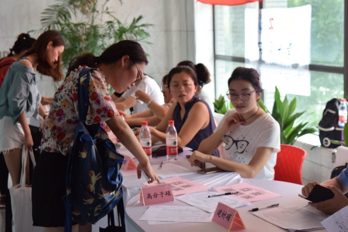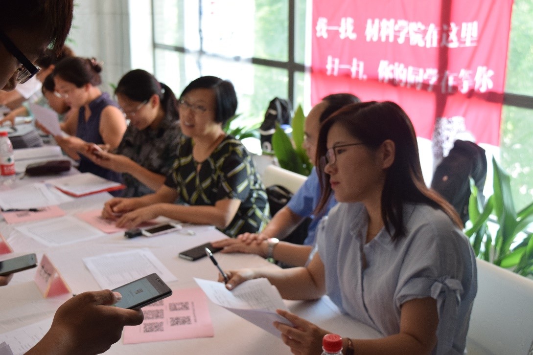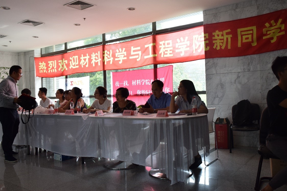 研究生迎新工作在嘉定校区同心楼320旁大厅正式拉开帷幕,学院教务科老师、研究生辅导员、新生班主任以及工作人员早已准备就绪,静待材子佳人的到来!