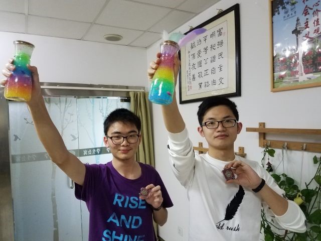 在活动的最后,所有作品被摆到一起,由参与活动的同学选出心目中最出色的那个,而最受欢迎作品的作者们也获得了小礼品。以下是获奖者及其作品合影:
