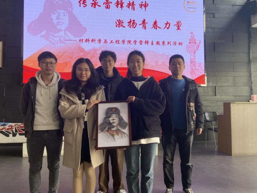 研究生第三党支部的同志们在此次学雷锋系列主题活动中制作了“党旗飘飘”和“雷锋画像”两幅绕线画。首先用一颗颗螺丝钉勾勒出图案的轮廓,再通过丝线反复缠绕将图案内部填充不同的颜色。弘扬雷锋精神要从当下干起,从小事做起,用一点一滴的实际行动做实事。绕线画工艺繁琐,需要极大的耐心,一个步骤出错可能前面已完成的部分都要重新来,但遇到困难不放弃,坚持到底才能胜利,从中体会到了雷锋艰苦奋斗、敢于斗争的精神。