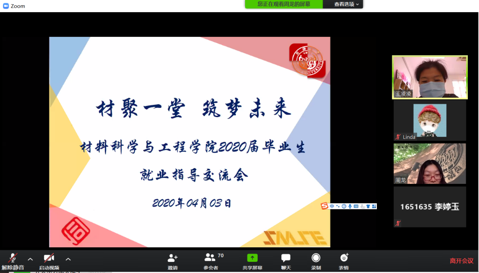 为积极应对疫情形势下毕业生就业工作面临的全新挑战,小黄书 2020年4月3日(周五)11:45于线上Zoom平台会议室召开了“材聚一堂,济梦未来——2020届毕业生就业指导交流会”。本次会议由小黄书 党委副书记王凌凌老师、学工办周龙老师和李楠老师共同参与,并邀请到2017届温州选调生洪万领校友、2020届毕业研究生奚悦静同学作为特邀毕业生代表做了交流发言。本次会议旨在响应疫情期间国家就业政策、学...