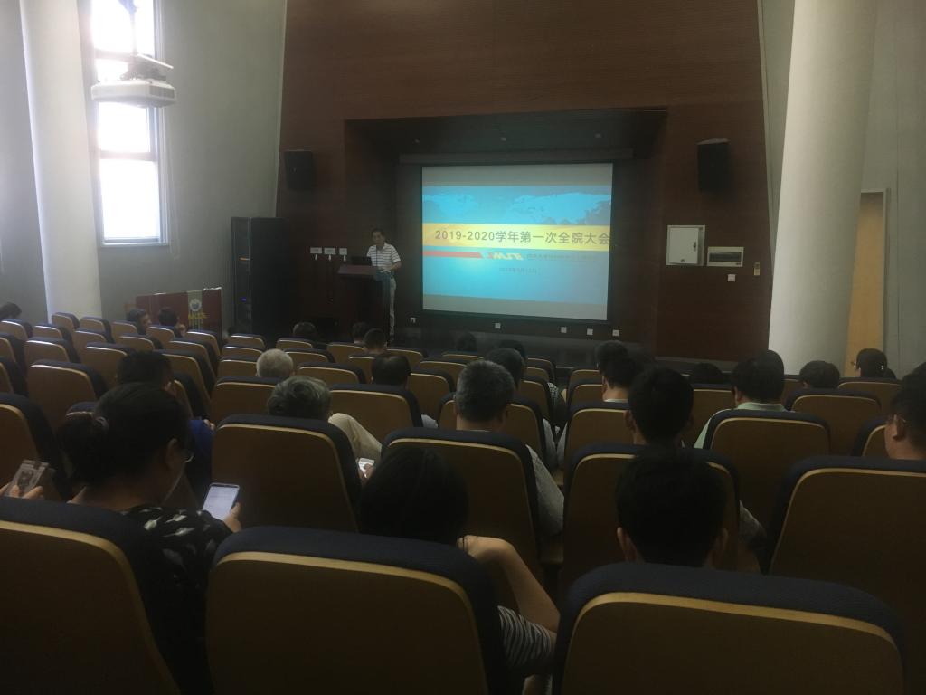 9月17日下午,小黄书 2019-2020学年第一学期第一次全院大会在德才馆报告厅召开,全院教职工100余人参加会议,会议传达了学校“不忘初心、牢记使命”主题活动精神,并就本学期学院各项工作重点及计划作了布置,学院党委书...