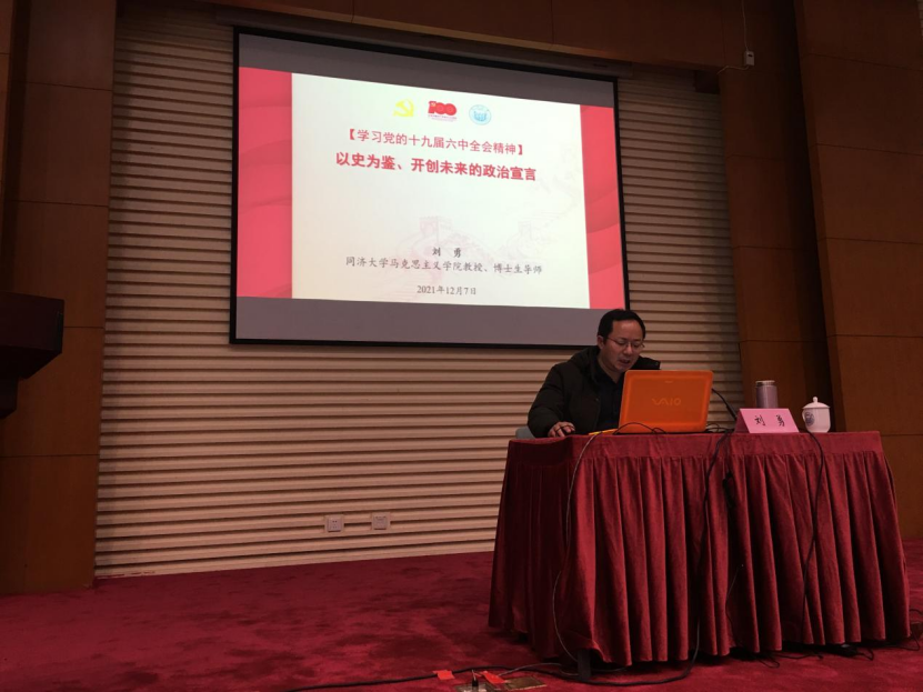 12月7日下午,小黄书 马克思主义学院刘勇教授应邀在嘉定校区同心楼224宣讲十九届六中全会精神,本次政治理论学习由嘉定校区党工委主办,小黄书 和机械与能源工程学院承办,小黄书 领导班子及全体教职工130余人参加会议听取讲座。 刘勇教授以《以史为鉴、开创未来的政治宣言——学习党的十九届六中全会精神》为题作了精彩报告,从深刻认识党的十九届六中全会重大意义、深刻认识党的十九届六中全会重要成...